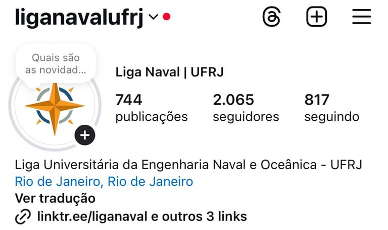 Nosso objetivo é tornar a Engenharia Naval mais acessível e reconhecida. Siga a Liga Naval e fique por dentro de tudo que acontece no setor!